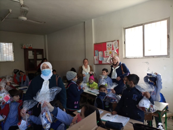 حيث تم توزيع أكياس الحلوى على الأطفال والأولاد.