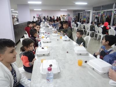 ختام الجولة ، ساعد الوفد بتحضير الافطار لأبنائنا،الذي حضره حوالي ثلاثمائة طفل وطفلة من ابناء،وشاركوهم الإفطار.كما قام الوفد بالتقاط الصورالتذكارية مع الاطفال وطاقم العمل.