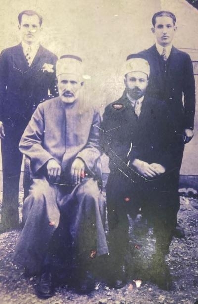 الصورة تضم: الشيخ احمد امين سليم حمود الجد، والى يساره ابنه الشيخ محمد انيس الذي اصبح مفتي صيدا والجنوب لاحقاُ، وخلف الجد صبحي سليم حمود والد الدكتور غسان، وخلف الشيخ محمد انيس محي الدين والد الشيخ ماهر.