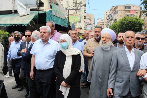 ثم حمل النعش على الأكتاف وواصل الموكب مسيره وصولاً الى ساحة الشهداء حيث أم الشيخ ماهر حمود المصلين على جثمان الراحل في مسجد الشهداء قبل ان ينطلق موكب الى تشييع مجددا الى وجهته الأخيرة في مقبرة صيدا الجديدة في سيروب حيث وري الجثمان في الثرى وتقبلت عائلة الراحل يحيط بهم فاعليات المدينة التعازي .