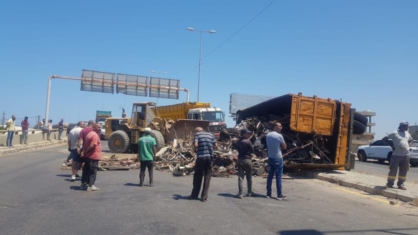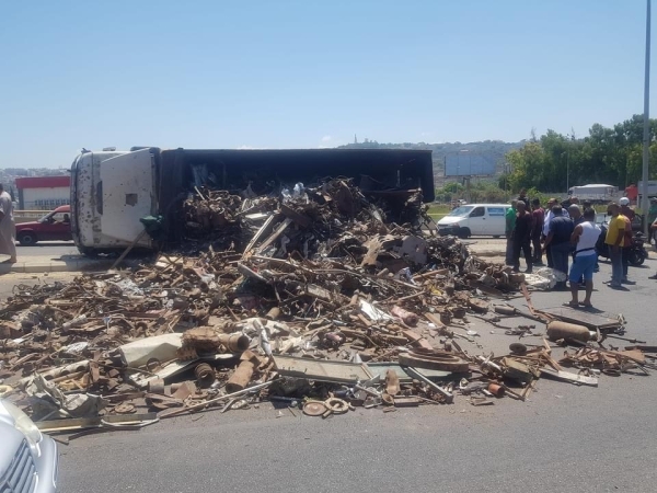 انقلاب شاحنة محملة (بالخردة ) فوق جسر سينيق