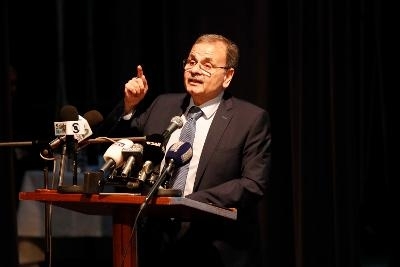 وأضاف " من هنا اهمية هذا اللقاء لأننا حتى نتمكن من اعادة بناء الدولة وما فقدته، الدولة العادلة القادرة على حماية كافة مواطنيها ، ونحن نتفاءل بوجود مسؤولين امثال القاضي عباس الحلبي ، نقول نحن علينا ان نعمل متضامنين من اجل ان نتجاوز هذه المرحلة ".وانا أؤيد كل ما جاء في حديث السيدة بهية والدكتور أسامة ولكني اريد ان اختم بقول لروائي اميركي ان "مثلث القوة الحقيقي يبدأ بالعلم والمعرفة ثم بالثروة المالية وبعدها بالقدرة الجسدية والعسكرية ". اذا العلم والمعرفة قادران على بناء مختلف عناصر القوة وبالتالي علينا أن نعمل على العلم والمعرفة ليكونوا أساسا في بنا الدولة والمجتمع. والتحدي الثاني " التعليم والتعليم الحديث في القرن 21 ".
