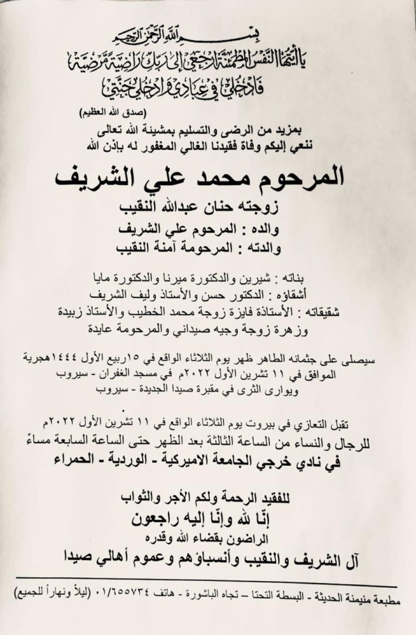 وفاة محمد علي الشريف