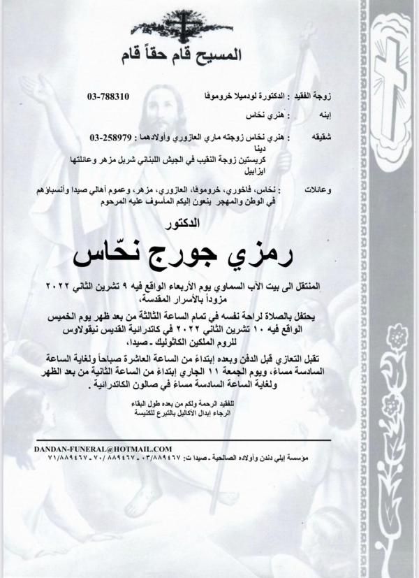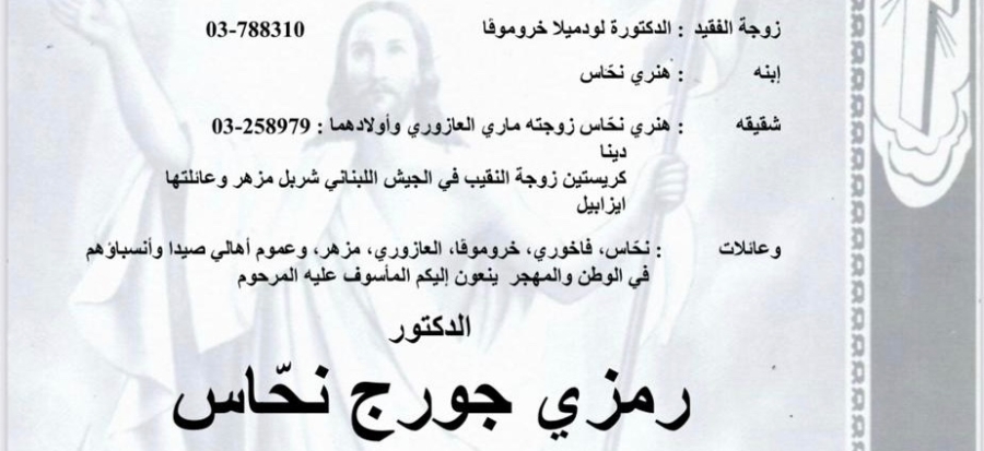 شكر وعرفان لكل من شارك في عزاء والدة القاضي زاهر حمادة