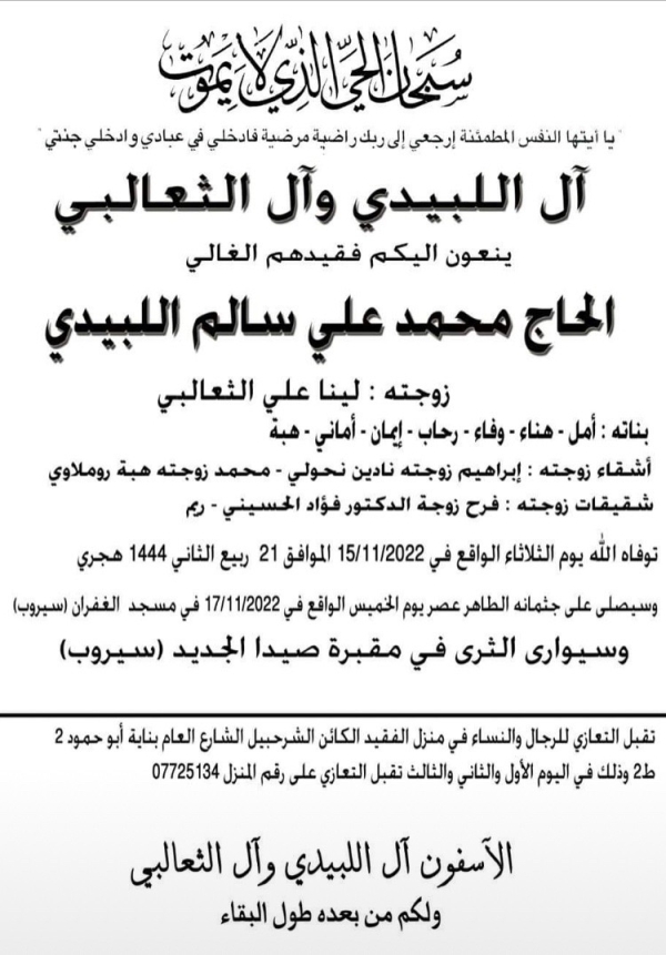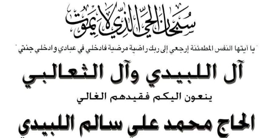 وفاة وفاة الحاج محمد علي سالم اللبيدى