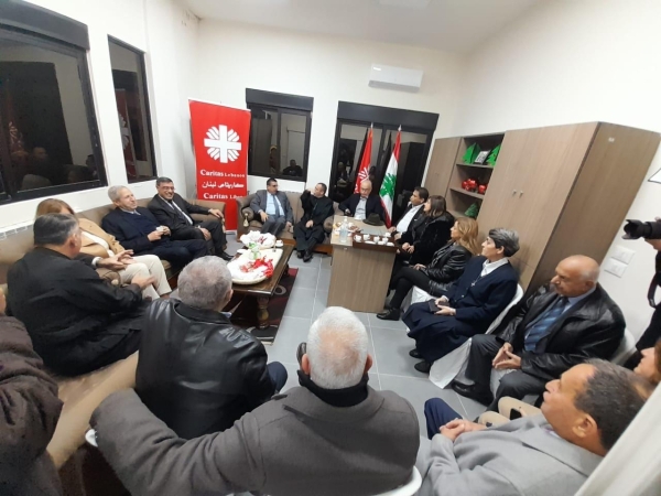على أنغام ترنيمة " روح زورهن ببيتهن ٠٠٠" استقبلت المدرسة المختصة كاريتاس لبنان بيت جورجيت وحنا رومانس القائم بأعمال السفارة البابوية في لبنان Mgr Giovanni bicheri وصاحبي السيادة المطرانين مارون العمار وجورج اسكندر ومعالي وزير الشؤون الاجتماعية الدكتور هكتور حجار والقاضية هيلانة اسكندر والدكتور نقولا حجار نائب رئيس كاريتاس لبنان والسيد انطوان صاصي ورئيس بلدية لبعا السيد فادي رومانوس وكهنة وراهبات واهالي الطلاب حيث كان في استقبالهم مدير المدرسة الاب جهاد فرنسيس والهيئة التعليمية وبعد كلمات الترحيب من السيد رومانس الذي نوه بالتطور الملموس والظاهر في حياة الطلاب والدكتور حجار الذي تحدث دور كاريتاس الاجتماعي والتربوي والصحي في لبنان كما كانت كلمة للقائم بالاعمال البابوية الذي شكر القيمين على هذا المركز وأبدى تأثره بالجهد الذي يبذل من أجل هؤلاء الطلاب معبراً عن فرحه انه موجود اليوم في هذا المركز لانه عاش معاني الميلاد من خلال ما قدمه الاولاد من عروض فنية وتمثيلية حول عيد الميلاد المجيد ثم قدم القائم بالاعمال البابوية والسيد رومانس وشباب لبعا هدايا للطلاب ولإخوتهم وأولاد المعلمات وفساد جو من الفرح والسلام قلوب الجميع .وفي الختام شكر الاب جهاد المونسنيور بيشاري واصحاب السيادة ومعالي الوزير حجار وكاريتاس لبنان ممثلةً بنائب الرئيس وااسيد رومانوس وكل الحضور على هذه اللفتة الكريمة لطلاب المدرسة المختصة لأنهم هم العيد وهم الذين خصهم الله بنعمة ان يكون حضوره في العالم من أجلهم ووضع على دربهم اناس يكونون يده الطرية في حياتهم التربوية والنفسية والجسدية فشكرا لله ولكل محب للإنسان والطفولة .