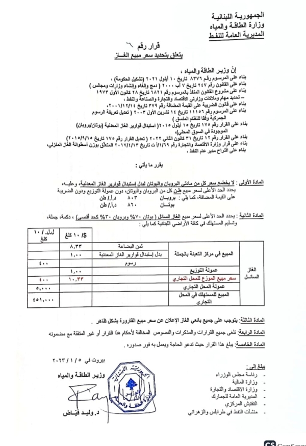 الغاز: 451000 ليرة