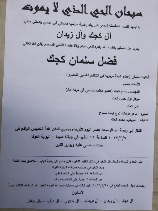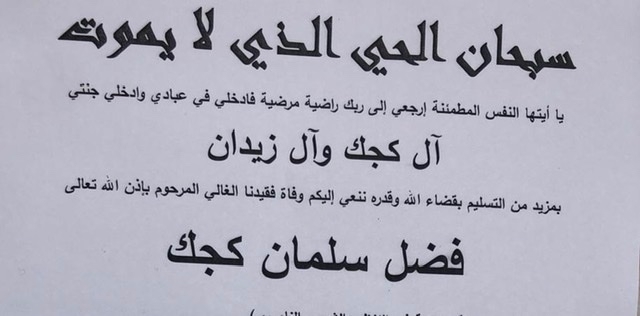 شكر وعرفان لكل من شارك في عزاء والدة القاضي زاهر حمادة
