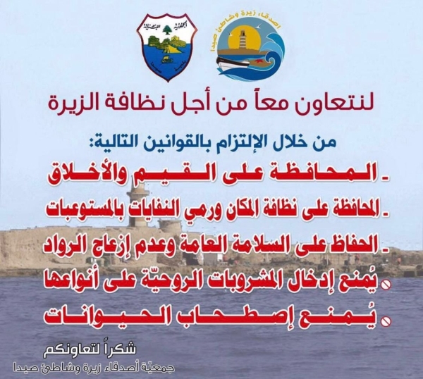 هذه التوجيهات وضعت منذ سنوات من قبل جمعية أصدقاء زيرة وشاطئ صيدا برئاسة الأستاذ كامل كزبر ولا زالت متبعة حتى يومنا هذا، وقامت شرطة بلدية صيدا بمرافقة الشباب الذين قاموا بتعليق هذه اليافطات تأكيداً على قرار البلدية حسماً للجدل في هذا الشأن.