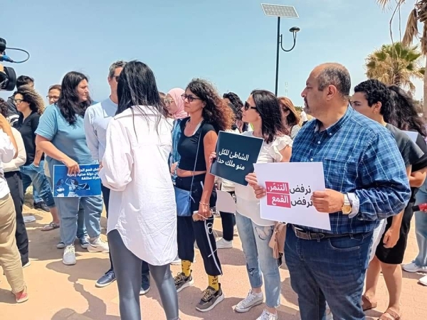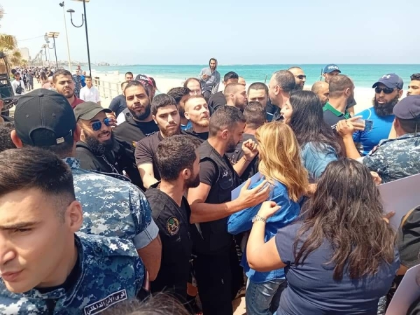 على المسبح الشعبي في صيدا حضرت القوى الأمنية بأمره العقيد هاني القادري وعناصر من مخابرات الجيش لمنع عقد أي مؤتمر صحفي أو نشاط على الشاطئ من قبل مناصري حرية المرأة أو المحافظين من الجو الإسلامي.