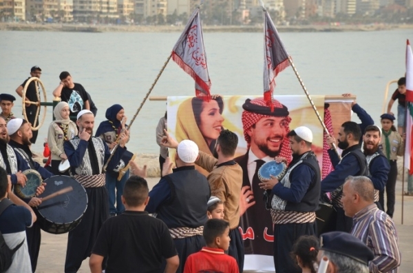 الفرح الذي عاشه الأردن بزفاف ولي العهد الأمير الحسين بن عبد الله من الأميرة رجوة آل سيف الحسين، امتد إلى بعض الدول العربية التي شاركت الأردنيين ومنها لبنان، إذ أقيم احتفال عند الباحة الغربية للملعب البلدي شمال المدينة، رفع المشاركون فيه صور ولي العهد الأمير الحسين وعقيلته الاميرة رجوة على وقع الزغاريد وعزف فرق جمعية الغد الكشفية وتوزيع الحلوى.