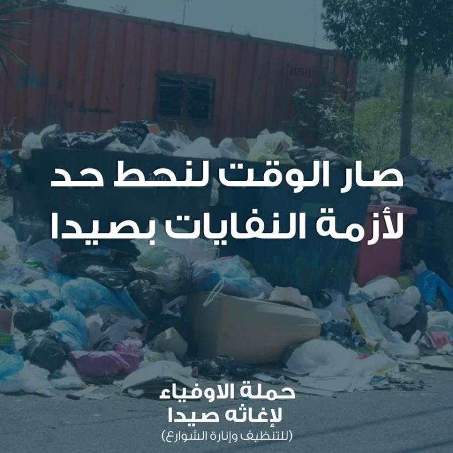 لان من رحم التحديات تولد المبادرات والحلول أُعلن في مدينة صيدا عن مبادرة جديدة لحل معضلة رفع النفايات المتراكمة منذ اسابيع في شوارعها وأحيائها تحت عنوان " حملة الاوفياء لاغاثة صيدا " مؤلفة من عدد من رجال اعمال مدينة صيدا وتجارها واهلها الخيرين وبالتعاون والتنسيق الكامل مع رئيس بلدية صيدا المهندس محمد السعودي وسائر الدوائر المختصة وهي حملة تعتمد على دعم التجار ورجال الاعمال من خلال صندوق مستقل بهدف تمويل ودعم آليات رفع النفايات المتراكمة في الشوارع وكنسها وتنظيفها ورش المبيدات خصوصا في ظل موجة الحر الغير اعتيادية التي تسيطر على المنطقة وتداعياتها في حال استمرار الوضع على ما هو عليه .