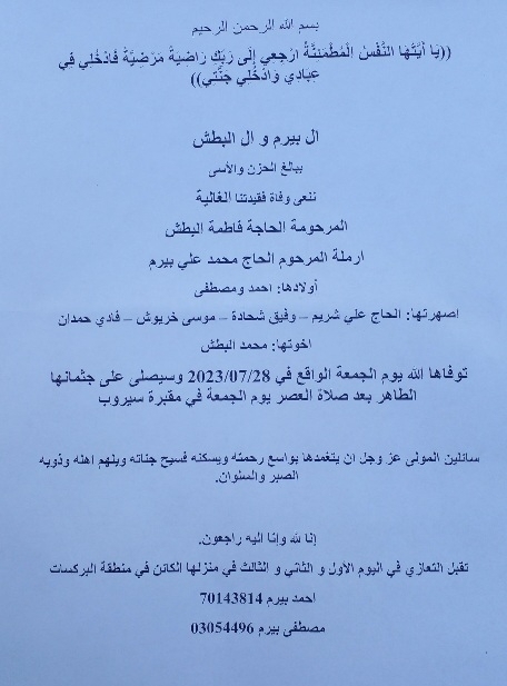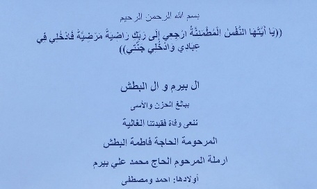 وفاة الحاجة فاطمة البطش
