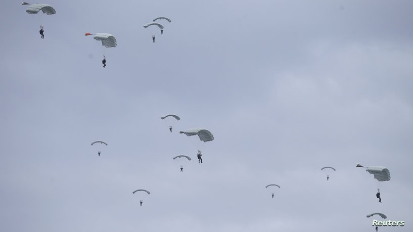 وأظهرت لقطات فيديو نشرتها الوزارة مجموعات من القوات السورية تقفز من طائرات وهليكوبتر روسية، وقامت بما قالت الوزارة إنه أول هبوط جماعي للجيش العربي السوري يجرى ليلا من طائرة من طراز آي.إل-76، وفقا لرويترز.