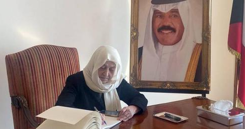 بهية الحريري ممثلة الرئيس الحريري وباسمها قدمت التعازي بوفاة أمير الكويت