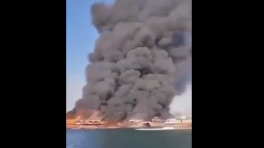 وفي مقاطع مصورة تم تداولها عبر مواقع التواصل الاجتماعي، يمكن رؤية عدة سفن مشتعلة، ودخان كثيف يتصاعد من المكان.