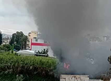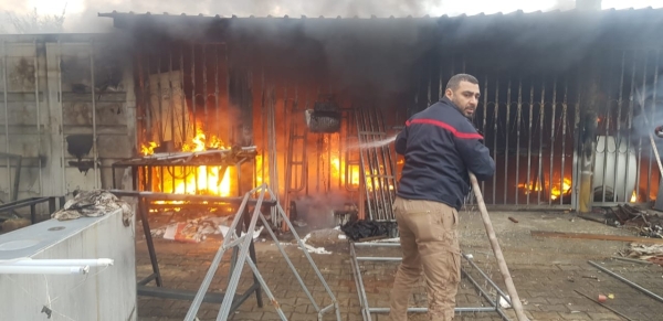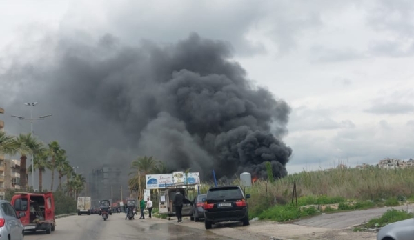 بالصور حريق كبير يلتهم معملاً للحدادة في صيدا