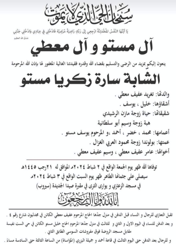 وفاء الشابة سارة زكريا مستو معطي