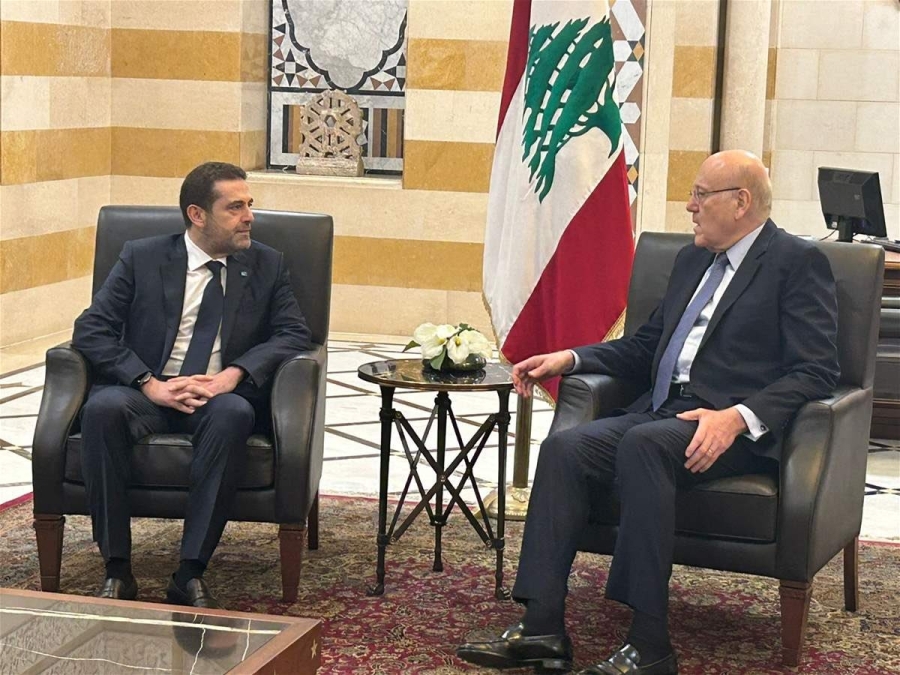 إستقبل رئيس حكومة تصريف الأعمال نجيب ميقاتي رئيس الحكومة السابق سعد الحريري في السراي الحكومي