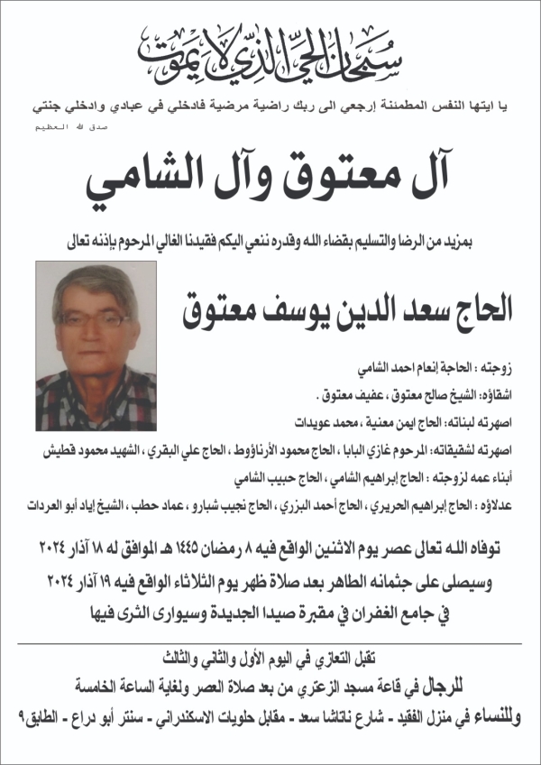 وفاة الحاج سعد الدين معتوق