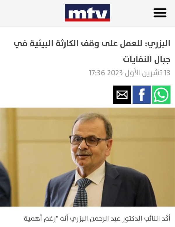 البزري : أننا "سنقوم بما يلزم لوقف هذه الكارثة البيئية والتواصل مع وزير البيئة والبلديات المعنية والقوى المجتمعية المهتمة لإيجاد الصيغة المناسبة".
