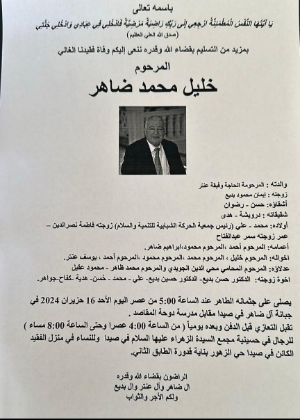 وفاة خليل محمد ضاهر