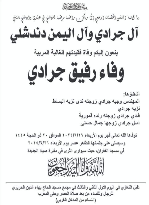 وفاة وفاء رفيق جرادي