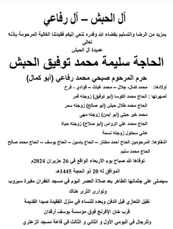 وفاة سليمة محمد توفيق الحبش