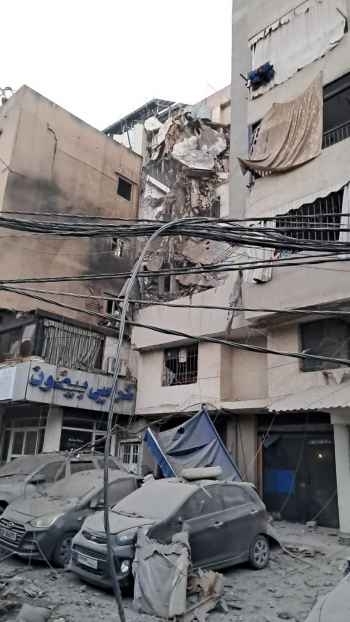 مشاهد غارة على بناية المقاصد صيدا