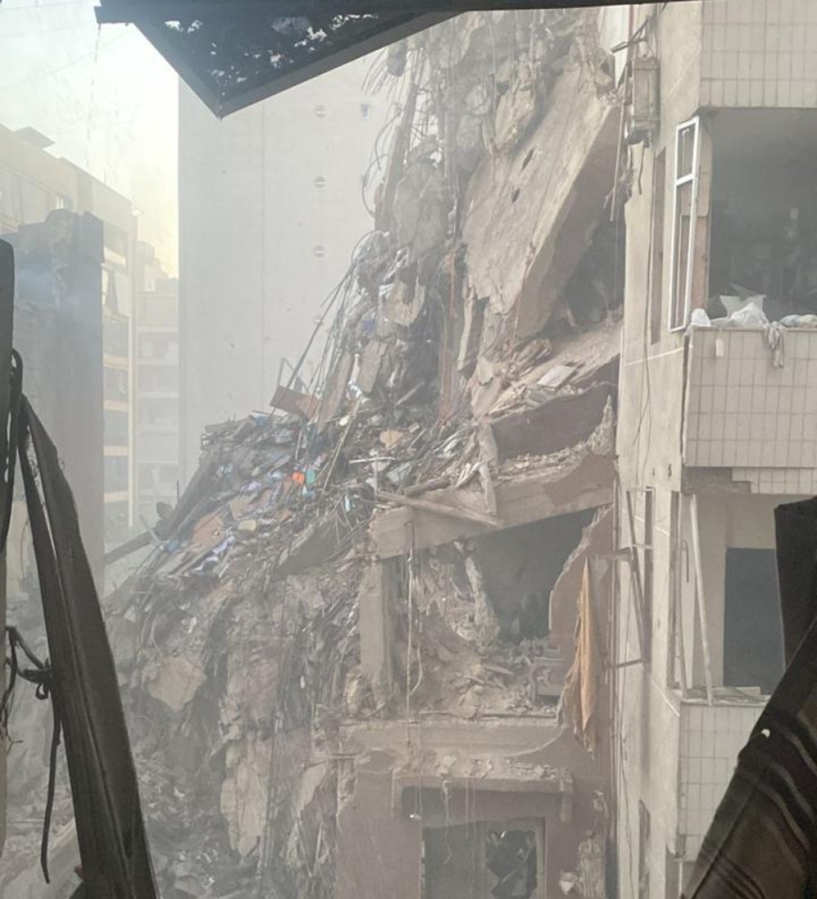 صورانهيار مبنى "الربيع" الذي استهدفته الغارة في محيط مستشفى بهمن