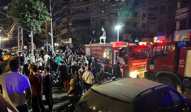 مشاهد غارة على بناية المقاصد صيدا