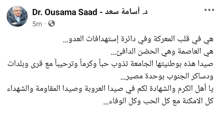 اسامة سعد على منصة أكس: " أهل الكرم والشهادة لكم في صيدا العروبة وصيدا