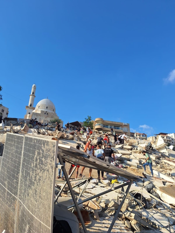 بالفديو اثار القصف في مبنى جمعية المقاصد الخيرية الإسلامية في صيدا