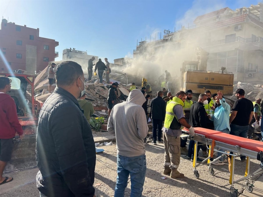 بالفديو اثار القصف في مبنى جمعية المقاصد الخيرية الإسلامية في صيدا