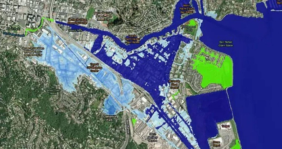 وهذا يمثل ضعف التقديرات الإقليمية السابقة لهذه المناطق الحضرية والتي بلغت 6.7 و7.4 بوصات على التوالي، أما في سان رافائيل، فإن ارتفاع مستوى سطح البحر بمقدار قدم واحدة فقط من شأنه أن يغمر أحياء بأكملها ومراكز التسوق وحتى بعض المدارس، وفقًا لـ Sea Level Rise Viewer التابع للإدارة الوطنية للمحيطات والغلاف الجوي.