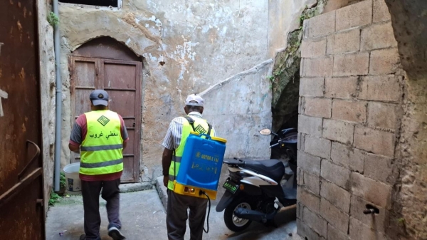وباشرت صباح اليوم فرق مجموعة معطي غروب أعمال رش المبيدات في الأحياء والساحات داخل المدينة القديمة حيث لاقت ترحابا من الأهالي، ولا سيما مع تكاثر الحشرات والقوارض في فصل الصيف وارتفاع الحرارة.
