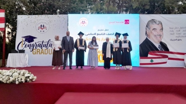 وتابعت مخاطبة الخريجين : أنتم اليوم في لحظة مفصلية من حياتكم، تستعدون لمراحل جديدة من التّعليم الثانوي والمهني وصولاً إلى الجامعات.إحملوا معكم إرادتكم الصلبة وطموحاتكم، وكونوا رسلاً للخير والعدل، واجعلوا من الثورات الرقمية التكنولوجية والذكاء الاصطناعي رفيق درب فاعلاً ومفيداً. كونوا أوفياء لهذا الصرح التربوي ولهذه المدينة التي تفتخر بكم، ولأسركم الذين يعتزون بنجاحكم ويساهمون في صناعة مستقبلكم..