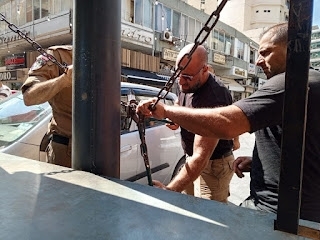 إنطلقت الحملة صباح اليوم من أمام القصر البلدي في ساحة النجمة وصولا للشوارع الداخلية في السوق التجاري، حيث باشرت شرطة البلدية إزالة البسطات المخالفة أمام المحال التجارية، ومصادرة عربات وأكشاك مركونة، ولوحات إعلانية، ومنها أكشاك معدنية مربوطة بسلاسل وأقفال، حيث قامت الشرطة البلدية بقص السلاسل ونقل المخالفات من المكان بآليات فرق طوارىء وورش البلدية.