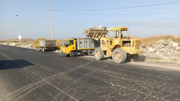 وقد قامت آليات الشركة برفع هذه المخلفات والبقايا من على جانب الطريق ، حيث كان البعض يتخلص منها برميها في المكان ، برغم التحذير من مغبة هذا العمل نظرا لتداعياته البيئية والسلامة العامة.