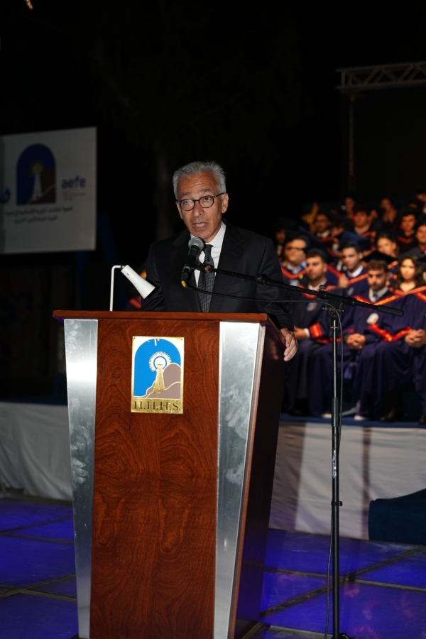 وتوجه الوزير البساط إلى الخريجين بالقول: "أما أنتم، المتخرجات والمتخرجون، فأقول لكم هذا من موقع التجربة والصدق، فمنذ أكثر من أربعين عاماً، وفي زمن كان الوطن يرزح تحت وطأة أزمة قاسية تشبه اليوم، كنت أجلس في مكانكم، أتهيأ للانطلاق من مقاعد المدرسة إلى عالم أوسع، أحمل أسئلتي، ومخاوفي، وطموحاتي. دعوني أن أقول لكم: أنا أفهم تماماً ما يدور في قلوبكم اليوم. أؤمن، كما آمنت حينها، أن ما نعيشه ليس نهاية الطريق بل بدايتها. الأزمات مهما طالت، لا تصمد أمام العزم والإرادة. أنتم اليوم، بما تحملونه من معرفة، وبما تمتلكونه من شغف وذكاء وأخلاق، أنتم أمل هذا البلد الحقيقي. لا تفقدوا الإيمان بأنفسكم، لبنان الغد يُكتب على أيديكم".