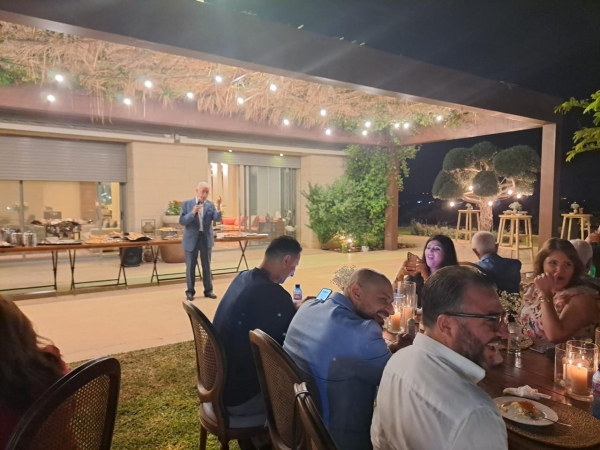 بداية ترحيب من صاحب الدعوة السيد الأنصاري الذي قال: يسعدني ويشرفني في هذه الأمسية الجميلة ان استضيف مع عائلتي هذه المجموعة المميزة والتي تمثل مدينة صيدا بكافة أطيافها وانتماءاتها الاجتماعية والسياسية.