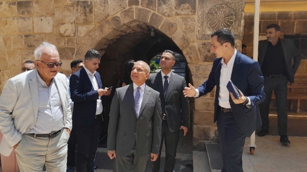 المحطة الأولى من الزيارة كانت في خان الإفرنج فاستقبلته الحريري بحضور المهندس يوسف النقيب والمديرة التنفيذية لمؤسسة الحريري الدكتورة روبينا أبو زينب ، حيث عقد لقاء قدم خلاله الأستاذان الحسن الغندور ومحمد إسماعيل من فريق عمل المؤسسة عرضاً عن أبرز مشاريعها وبرامجها منذ تأسيسها الى اليوم ، ومنها التدخل الحضري من خلال اعمال الترميم لبعض المعالم التاريخية والتراثية ، والتدخل البشري من خلال التعليم والمشاريع والنشاطات التي تهدف لبناء الانسان .