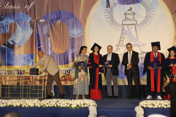 في حضرةِ المجدِ والتخرّج، واستكمالًا لمسيرةٍ تربويّةٍ امتدّت على مدى ١٤٦ عامًا من النّبضِ المقاصديّ، الذي لا يزالُ يزهرُ وعيًا، ويتوّهجُ عطاءً، احتفلت ثانويّةُ المقاصدِ الإسلاميّة – صيدا بتخريج الدفعة الثمانين من طلابها وطالباتها برعاية سماحة مفتي الجمهورية اللبنانية الشيخ الدكتور عبد اللطبف دريان، ممثلاً بسماحة مفتي صيدا وأقضيتها الشيخ سليم سوسان. وقد كان رئيس الجمعية الأستاذ فايز البزري وأعضاء المجلس الإداري في استقبال المدعوين من الفعاليات السياسية والإجتماعية والإقتصادية والتربوية وعلى رأسهم النواب السادة الدكتور عبد الرحمن البزري والدكتور ميشال موسى وعلي بك عسيران والدكتور أسامة سعد ممثلاً بالدكتور خالد الكردي ورئيسة مؤسسة الحريري للتنمية المستدامة السيدة بهية الحريري ممثلة بالسيد مازن حشيشو ونائب رئيس الجماعة الإسلامية في لبنان الدكتور بسام حمود ورئيس بلدية صيدا ممثلاً بنائب الرئيس الدكتور أحمد عكرة والرئيس السابق لجمعية المقاصد المهندس يوسف النقيب ورئيس جمعية محمد زيدان ممثلاً بالسيدة رنا زيدان ورئيس جمعية مقاصد بيروت الدكتور فيصل سنو ممثلاً بالسيد حسن بحصلي ورئيس مقاصد النبطية السيد حسن شاهين وأمين سر منظمة التحرير الفلسطسنية الأستاذ فتحي أبو العردات ورئيس نقابة الأطباء في صيدا الدكتور نزيه البزري ورؤساء وعدد من الجامعات والجمعيات الأهلية والإجتماعية في صيدا الشيخ حسن صفدية والسيدة رولا الأنصاري والدكتور سعيد مكاوي ورئيس جمعية تجار صيدا الأستاذ علي الشريف والقاضي إيهاب بعاصيري والسيد عمر مرجان والأستاذ عبد الرحمن الأنصاري والأستاذ محمد الحلبي والأستاذ محمود السروجي بالإضافة إلى أهالي وأصدقاء الطلاب الخريجين.