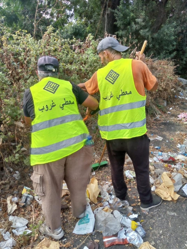 فرق معطي غروب تقوم بكنس الطرقات في صيدا بعد الاعتداء الاسرائيلي*