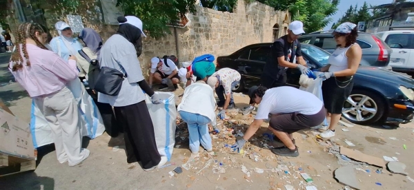 بعد تقديم الفقرات التوعوية توزعت الفرق المشاركة إلى مجموعات وباشرت حملة النظافة في محيط القلعة البرية وكنس الشارع التراثي .