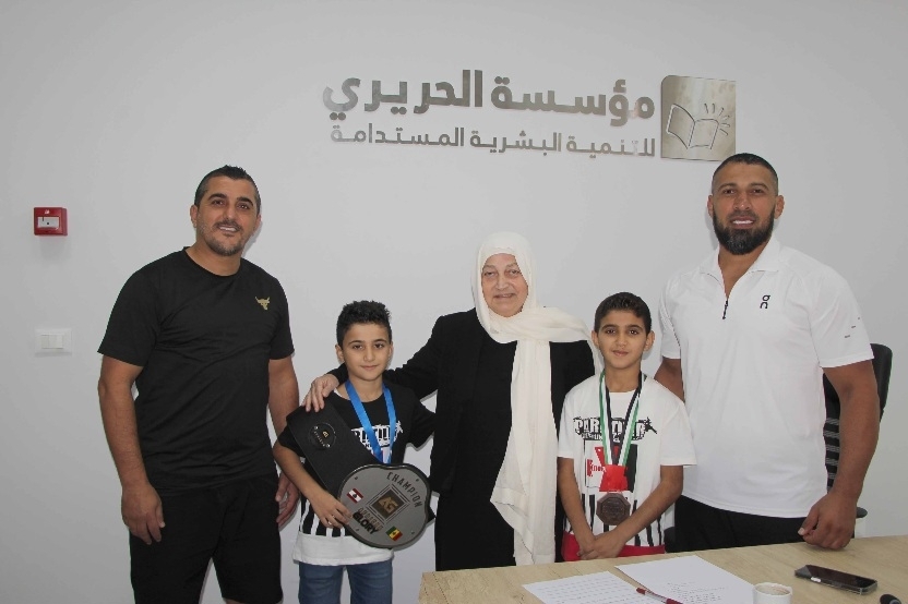 واطلع الوفد السيدة الحريري على أجواء مشاركة الشقيقين السن في البطولة ضمن المنتخب الوطني ( بعد فوزهما ببطولة لبنان ) ممثلين أكاديمية صيدا للفنون القتالية ، حيث أحرز آدم الميدالية البرونزية بعد فوزه بالمركز الثالث من بين 21 لاعباً ضمن مجموعته في الفئة العمرية 10-11 سنة وزن 30 كلغ ، فيما أحرز أمير المركز الخامس بين 24 لاعباً ضمن مجموعته في الفئة العمرية نفسها وزن 27 كلغ ، وواجه الشقيقان السن خلال المباريات التي خاضوها أبطال أوزبكستان وأذربيجان وأرمينيا في نفس الفئة والوزن .