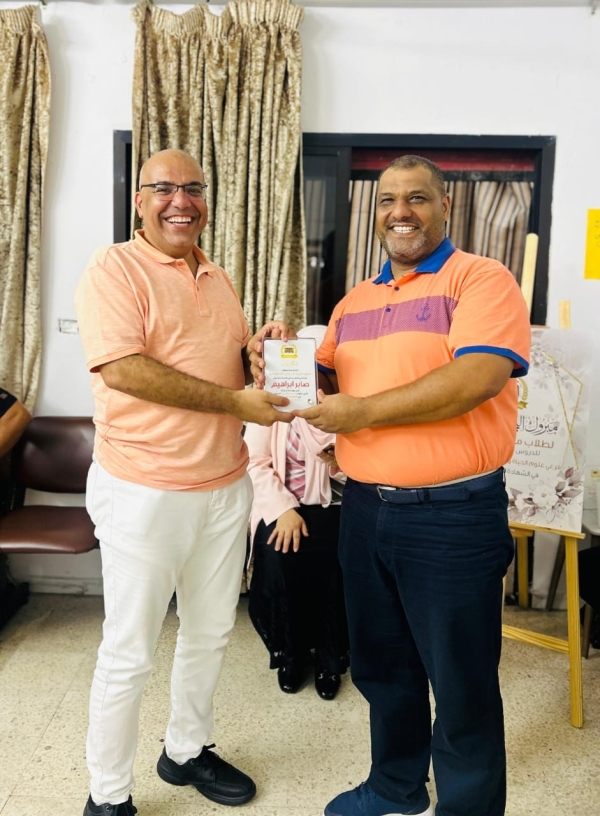 ختاماً قدم مدير المعهد الاستاذ بلال البقري دروعاً تكريمية الى افراد الهيئة التعليمية وإلى الطالبة المتفوقة روان قدورة ودعي الطلاب الى ضيافة كيك وعصير إحتفاء بهذة المناسبة