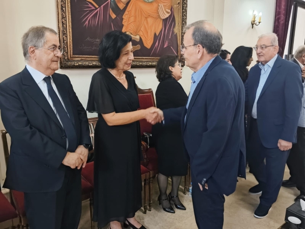 النائب د. ميشال موسى وعقيلته جنين وعائلة موسى يتقبلون التعازي بوفاة المربية ناديا حنا موسى في صالون الكنيسة في مغدوشة من حشد من الفاعليات والشخصيات السياسية والاجتماعية والاقتصادية والثقافية والقضاة وقادة الأجهزة الأمنية والأهالي.