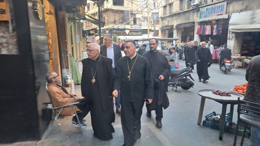 غبطة البطريرك العبسي والمطران حداد وابناء رعية صيدا يجولون في اسواق مدينة صيدا