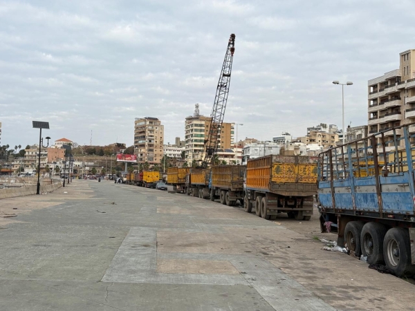 حيث تتراكم شاحنات نقل الخردة على كورنيش البحر ،وبين المباني في الأحياء والساحات المحيطة ،